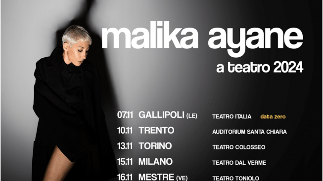 “A Teatro Tour 2024”, è questo il nome della tournée di Malika Ayane che vedrà la cantautrice meneghina impegnata in una serie di concerti dal vivo in teatro.