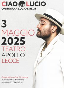 Lo spettacolo sarà in scena al teatro Apollo di Lecce sabato 3 maggio alle 21. Valentino Aquilano con la sua band non si limita a reinterpretare Dalla: grazie alla sua affinità vocale e alla somiglianza fisica, offre una performance che cattura l’essenza dell’artista.