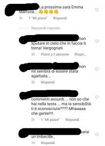 Vergognoso il post apparso sulla pagina ufficiale di Nadia Toffa, scomparsa dopo una lunga battaglia contro il cancro. Tra i ‘ricordi’ dei supporter della Iena, che continuano a scriverle parole piene di affetto e di vicinanza alla famiglia, è comparso un (brutto) commento. «La prossima sarà Emma Marrone» ha scritto una anonima utente, che ha augurato la morte alla cantante salentina.