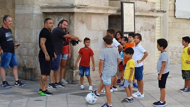 Come un ritorno al passato insomma, l’ex stella del calcio italiano che ha vestito le maglie di Lecce, Palermo, Juventus, Fiorentina e Benfica tra le altre, gioca a pallone tra i vicoli del capoluogo salentino ma questa volta circondato da telecamere e microfoni.