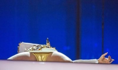 Un po’ imperatrice, un po’ futurista, di certo esplosiva. Il look scelto da Emma Marrone per affrontare il palco allestito al B&W Hallerna di Copenhagen per l'edizione 2014 dell'Eurovision Song Contest ha stupito un po’ tutti. Realizzato interamente a mano per l'occasione da Stefano De Lellis, con tanto di corona di cristalli creata da Galerie Lerique che si intreccia ai capelli raccolti e le conferisce un aspetto quasi da dea greca, l’abito in pelle bianca tempestato di ben duemilaottocento pietre e completato un lungo mantello in chiffon di seta, ha già sollevato una marea di polemiche. Perché se non c’è dubbio alcuno sul fatto che la voce della bella salentina sia riuscita a conquistare la platea durante le prove finali con il brano «la mia città», qualche perplessità l’outfit l’ha lasciata anche tra i suoi fan, tanto che qualcuno si è prontamente domandato se un vestito così attillato e corto possa riuscire a contenere l'esuberanza dei suoi movimenti. Con una scivolata da vera rocker in favore di camera, infatti, Emma ha mostrato gli slip o meglio gli shorts dorati che completano il look, subito immortalati dai fotografi sotto il palco.