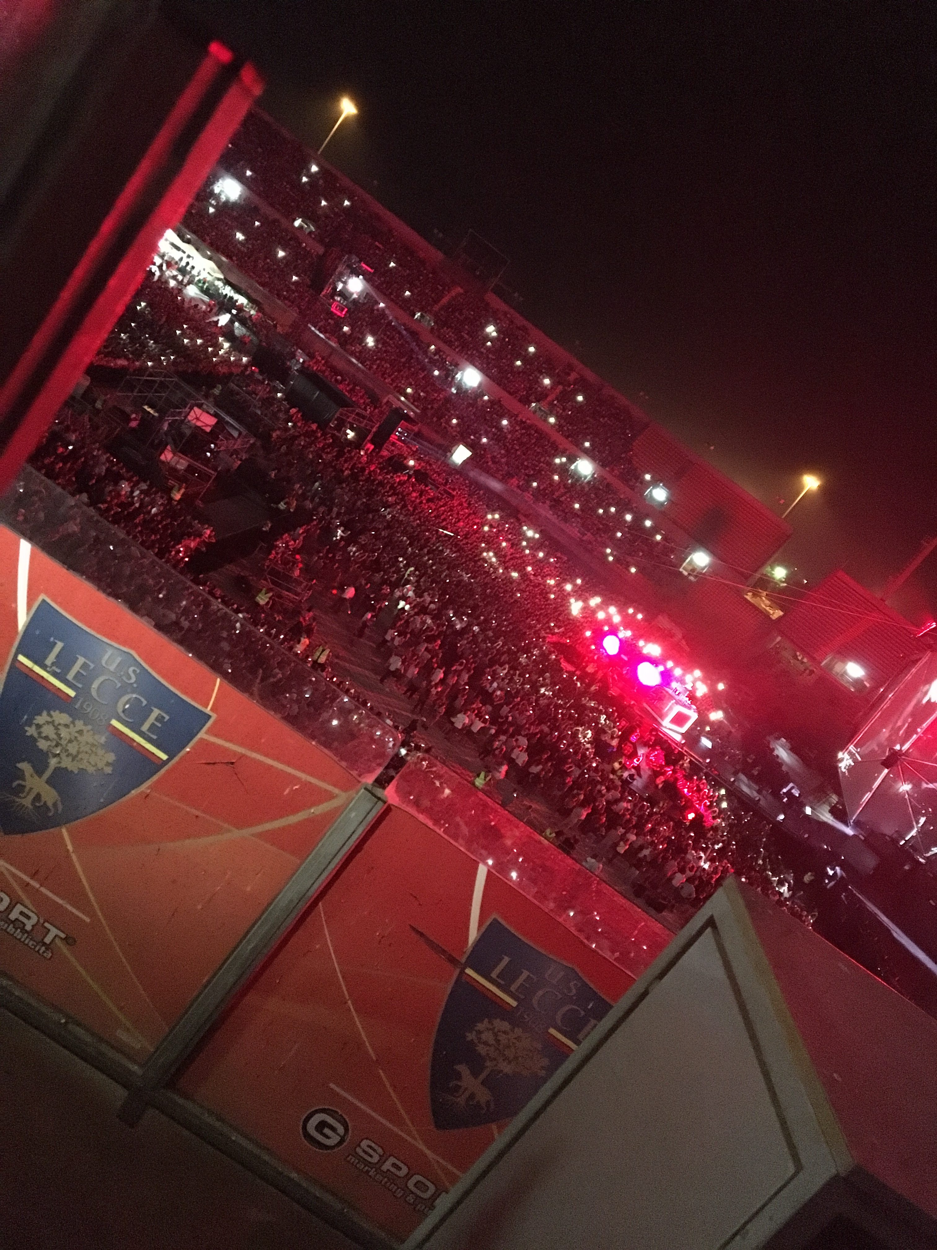 Lo stadio di Lecce, dal canto suo, non ha tradito le aspettative: in 30mila hanno affollato spalti e terreno di gioco, tutti ai piedi del grande palco allestito sotto la Curva Sud, e tutti agli ordini di uno scatenato Giuliano Sangiorgi che, si intuiva, non vedeva l’ora di tornare ad esibirsi nel capoluogo del suo Salento.