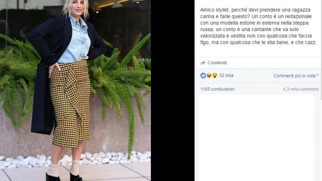 L’outfit scelto dalla bella Emma, glamour e sofisticato, ha convinto tutti tranne Selvaggia Lucarelli che, senza peli sulla lingua, ha puntato il dito contro chi si è occupato di curare l’immagine della regina delle classifiche. In un tagliente post, pubblicato sul suo seguitissimo profilo Facebook, la blogger ha commentato la foto ‘incriminata’ della cantante «Amico stylist – commenta la blogger e influencer sul social azzurro – perché devi prendere una ragazza carina e farle questo? Un conto è un redazionale con una modella estone in esterna nella steppa russa, un conto è una cantante che va solo valorizzata e vestita non con qualcosa che faccia figo, ma con qualcosa che le stia bene…».