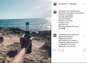 «Ai risvolti positivi. Al Salento meraviglioso che profuma d’amore e di orgoglio. Alla pelle abbronzata. Alle cose semplici. Agli amici di sempre. A questo mare. Alle cose vere. Sempre e solo alle cose vere. Salute» si legge.