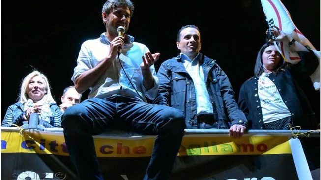 “Chiedo scusa io, per aver menzionato Renzi. Chiedete scusa anche voi, però, per aver votato la Poli Bortone” – irrompe così in una affollata Porta San Biagio Alessandro Di Battista, capopopolo del Movimento 5 Stelle.