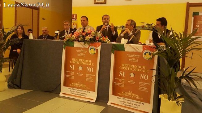 Come si conviene alle occasioni di riguardo sono stati tanti i protagonisti del confronto, quattro intrepreti per le due rispettive posizioni. Due da una parte e due dall’altra. A sostenere le ragioni del Sì c’erano Francesco Chirilli, già senatore della Repubblica, e Diego Sicorello del comitato “Lecce che dice Sì”; a sostenere le ragioni del No ci hanno pensato invece Paolo Pagliaro dell’Ufficio di presidenza nazionale di Forza Italia e Antonio Gabellone coordinatore provinciale dei Conservatori e riformisti.