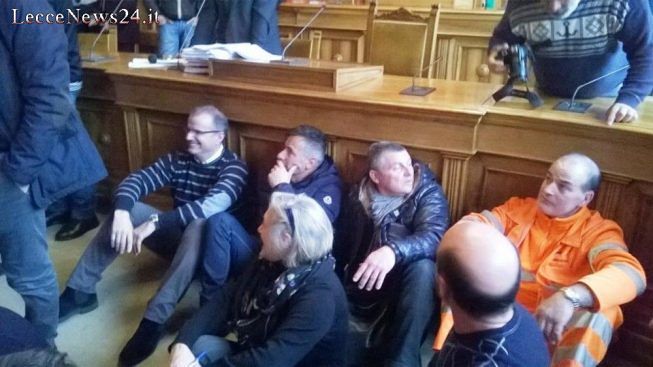 La maggioranza ha cercato di riprendere i lavori, ma le urla e la rabbia dei presenti non lo hanno reso possibile. È stato chiesto, quindi, lo sgombero dell’aula con l’aiuto della Polizia e della Digos e gli animi, se ce ne fosse ulteriormente bisogno, si sono surriscaldati ancora di più. Gli slogan “dimissioni” e “a casa” hanno coperto l’aula in un frastuono assordante e, alcuni lavoratori, si sono seduti per terra, con la chiara intenzione di non abbandonare l’aula per nessuna ragion al Mondo. La situazione era ormai degenerata ed era chiaro che non si poteva più trovare alcuna mediazione. Così, ad un nuovo appello, si è scoperto che il numero legale non c’era più, che molti assessori e consiglieri di maggioranza, tra cui il Presidente Gabellone, si erano allontanati dal retro e che la seduta era stata ufficialmente rinviata.