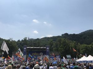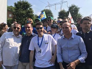 Imbarcati i “colleghi” la “traversata” parte ufficialmente. Dopo alcune soste, intorno alle ore 10.00 l’arrivo a Pontida. Si parcheggia il pullman e poi via, a piedi fino all’entrata del prato, dove, ad attendere il gruppo salentino, c’è il Coordinatore regionale Andrea Caroppo insieme agli altri leghisti di Puglia, c’è da fare l’ingresso all’interno del “Sacro Prato” tutti insieme. Immancabile foto di gruppo e la comitiva entra.