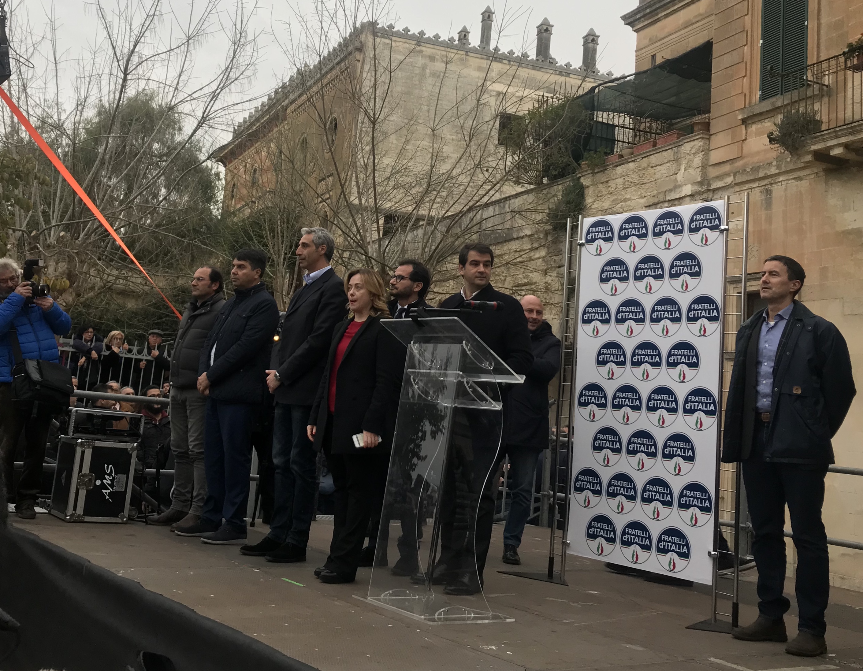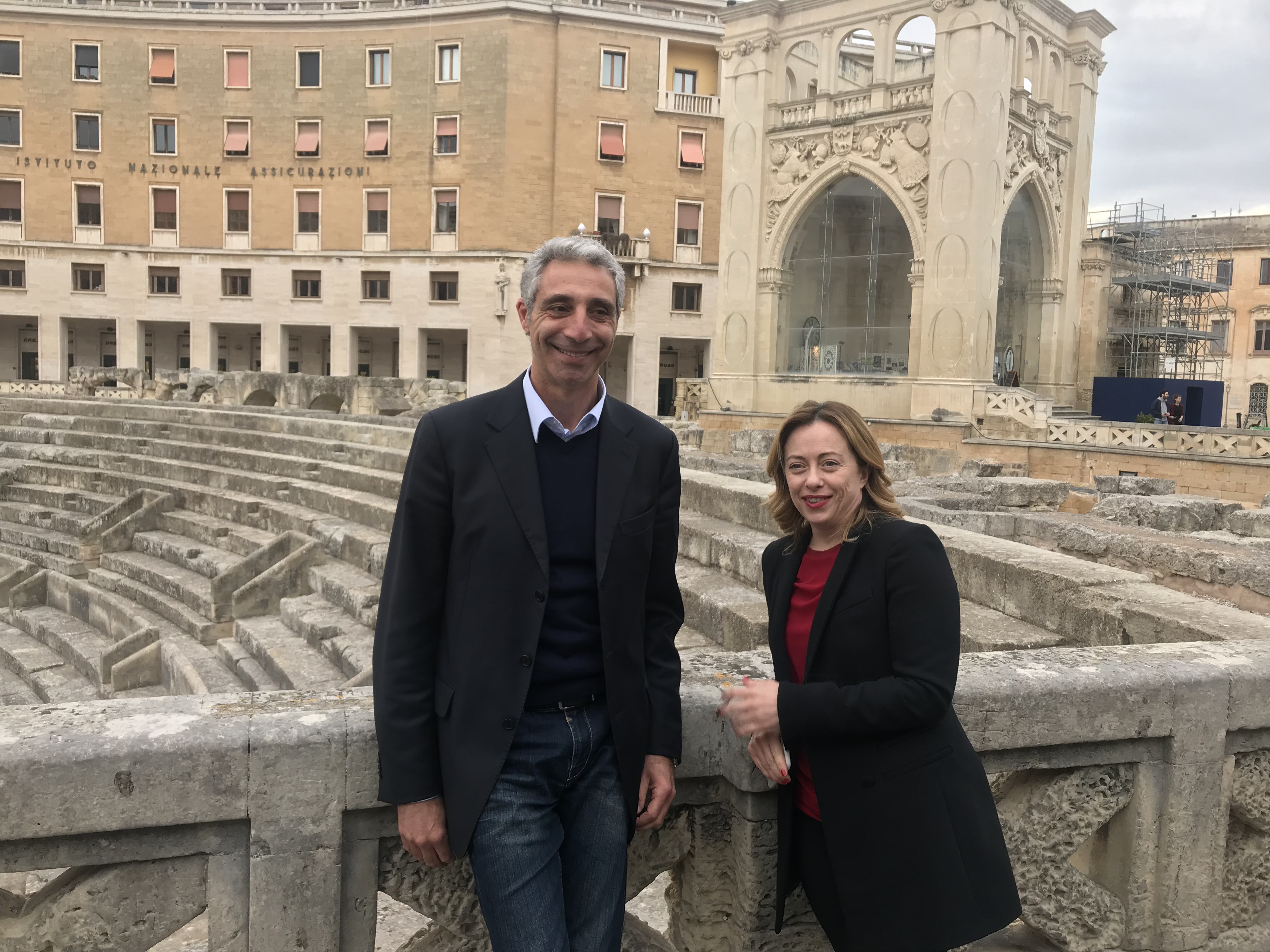 A poco meno di una settimana dal voto – la data è quella di domenica 17 marzo – la numero uno del movimento scende in pista per tirare la volata al suo coordinatore regionale che concorre – insieme a Mario Spagnolo (Lega) e Gaetano Messuti (Forza Italia) – alla carica di sfidante di Carlo Salvemini (centrosinistra), Arturo Baglivo (Movimento Cinque Stelle), Adriana Poli Bortone (Civismo) e Luca Russo (Associazione Movimento in Libertà), nella corsa a primo cittadino di “Palazzo Carafa”.