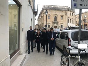 L’arrivo in Piazza S. Oronzo poco prima delle ore 17.00; l’intervista ai giornalisti presenti, la degustazione al volo della specialità gastronomica leccese – il pasticciotto – in una caffetteria del “Salotto buono” del capoluogo e poi a piedi, accompagnata tra gli altri dal Coordinatore Provinciale Pierpaolo Signore e del Deputato al Parlamento Europeo, Raffaele Fitto, verso Porta San Biagio, dove, militanti e simpatizzanti la aspettavano per il comizio.