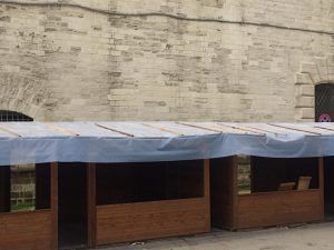 “Gli esercenti – accusa l’ex Assessore all’Ambiente – hanno pagato 1.000 euro a testa per avere giusto due moduli di pochi metri quadri, fatiscenti, in legno marcio, con il soffitto bucato e il cellophane inchiodato sulla copertura che ad ogni soffio di vento si gonfia come una vela. La corrente elettrica, poi, tutta un’altra vicenda. E ancora una volta l’inganno si svela a cose fatte: non c’è! Se i commercianti la vogliono sono altre 11mila euro da sborsare, tutto, ovviamente, a carico loro. Altrimenti al buio.