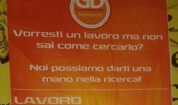L’immagine che ci giunge è quella di un manifesto, dell’Associazione Giovani Democratici, nella quale un gruppo di volontari si mette a disposizione per aiutare i giovani a cercare lavoro.