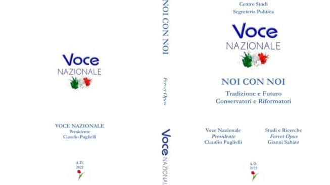 “Dalla giornata di oggi, mercoledì 8 marzo 2023, prende il via la diffusione del volume ‘NOI CON NOI – Tradizione e Futuro – Conservatori e Riformatori’, un viaggio che il Centro Studi della Segreteria Politica di Voce Nazionale ha inteso condividere con i propri aderenti e sostenitori in un momento nel quale le radici e la visione della politica necessitano di cultura, idee e fattiva operatività nel quadro di un’appartenenza al percorso storico dei conservatori e riformatori, assolutamente attuale ed estremamente innovativo in una visione del futuro”, afferma nel presentare il volume Claudio Puglielli, presidente di Voce Nazionale.