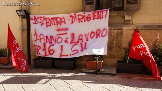 La scure dei tagli previsti dalla Riforma Delrio non si abbatte solo sui dipendenti Alba Service, ieri in presidio all’interno della Sala Giunta Provinciale. Bisogna considerare, infatti, l’intero pacchetto di servizi pubblici gestito dall’ente di Palazzo dei Celestini. Dentro questo terribile calderone, formato da finanziamenti mancati e risorse esigue, ci sono, purtroppo, anche i dipendenti Lsu (per i quali vengono stanziati complessivamente 120mila euro annui). Si tratta dei lavoratori socialmente utili che gestiscono le mansioni della Provincia di Lecce riguardanti attività d’archivio, protocollo, uscierato (anche all’interno del Museo ‘Sigismondo Castromendiano, dove risiede la biblioteca provinciale). Nella mattinata odierna, a pochi metri da Palazzo Adorno, una loro delegazione stava avanzando una richiesta ben precisa: un taglio del 10% degli extra spettanti ai dirigenti, che così garantirebbe il reintegro di un’implementazione lavorativa oraria pari a 16 ore.