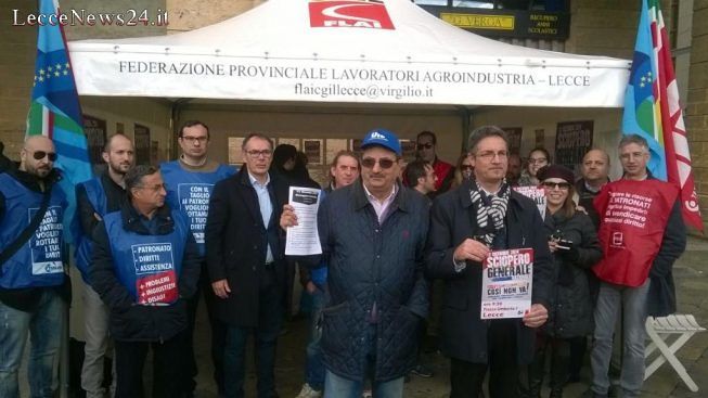 A margine della conferenza stampa di oggi ci sono stati, inoltre, gli interventi di altri lavoratori che stanno aderendo all’iniziativa. Per quel che riguarda la Pubblica Amministrazione ha parlato Walter Marangio, professore di una scuola pubblica che ha ribadito come i dipendenti delle scuole siano contro il piano della “Buona scuola” voluto da Renzi e sciopereranno contro la legge di stabilità che prevede il blocco dio tre anni dei contratti e il congelamento degli scatti di anzianità. Sulle tante vertenze che investono la Provincia leccese ha parlato Umberto Borlotti, ex Bat; Vito D’Addabbo è poi intervenuto per ribadire l’assurdità della situazione che investe i lavoratori dell’Orchestra Ico Tito Schipa che rischia di scomparire come la cultura nel Salento. Per i pensionati ha parlato Giuseppe Saracino che ha fatto presente come le pensioni siano ferme da 20 anni e abbiano perso il loro potere d’acquisto: sono tantissimi i pensionati che vivono con meno di 1.000 euro al mese e non riescono a far quadrare i conti. Gioacchino Marsano, infine, direttore del Patronato Inca, ha ribadito l’assurdità dei tagli ad un ente così importante che presta servizi gratuiti fondamentali a gente che, senza di loro, dovrebbe rivolgersi a professionisti e pagare parcelle salate, anche solo per una semplice informazione.