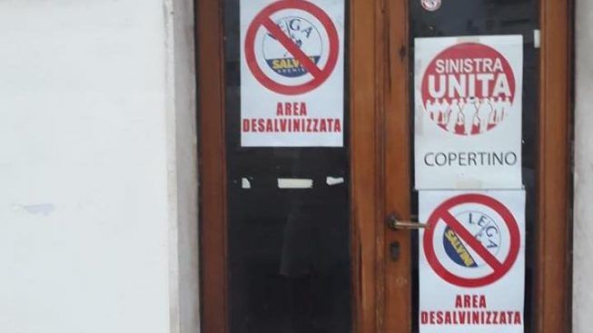 Da locandine con il logo della Lega inserito in un divieto e la scritta “area desalvinizzata“, al sopralluogo dei carabinieri. Accade a Copertino, dove nella mattinata di ieri gli agenti della compagnia locale hanno bussato alle porte della sezione cittadina di Sinistra Unita, un circolo che raduna diverse realtà politiche d’orientamento progressista, per chiedere conto delle locandine appese sulle vetrate e nell’area antistante.