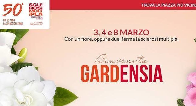 Il 3, il 4 e l’8 marzo, per la Festa della Donna, in 5.000 piazze italiane, come in oltre 50 Comuni del Salento, 10 mila volontari invitano a scegliere (con un contributo minimo di 15 euro l’una) una pianta di gardenia o una di ortensia, o entrambe, per sostenere la ricerca e l’assistenza, due facce della stessa medaglia: l’impegno a fianco delle persone. I due fiori sottolineano lo stretto legame tra le donne e la sclerosi multipla (SM), che colpisce la popolazione femminile in misura doppia rispetto agli uomini.