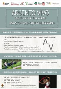 Prende avvio da Casarano il progetto di invecchiamento attivo ‘Argento vivo, percorsi di active ageing’, costituito dalla rete di partenariato composta da Anteas Lecce, Cisl Fnp Lecce, Spi Cgil Lecce, Auser Lecce, G.V.P.C. Anps Lecce, Gruppo di Cammino ‘Camminando…Insieme’ e Fondazione di Comunità del Salento nell’ambito dell’Avviso Pubblico emanato per la presentazione di specifici progetti di prevenzione sul territorio della Asl di Lecce finalizzati alla ‘promozione e valorizzazione dell’invecchiamento attivo e della buona salute’.
