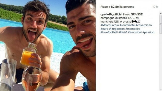 Ora, a scatenare l’ira dei tifosi è una foto postata sui suoi profili social che lo ritrae a bordo piscina insieme al compagno di stanza, Marco Parolo. In realtà, lo scatto che ritrae i due giocatori con un bicchiere in mano, intenti a fare la linguaccia è datata, probabilmente risale al giorno di meritato riposo dopo la vittoria per 2-0 contro la Spagna. Ma non è bastato a frenare l’ira degli internauti, che ancora non hanno digerito la sconfitta.