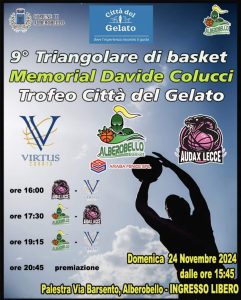 Alberobello si prepara ad ospitare una nuova edizione del “Memorial Davide Colucci – Trofeo Città del Gelato“, un triangolare di basket che domenica 24 novembre, a partire dalle ore 15.45, animerà la palestra di Via Barsento. L’ingresso è libero per tutti gli appassionati di pallacanestro.
