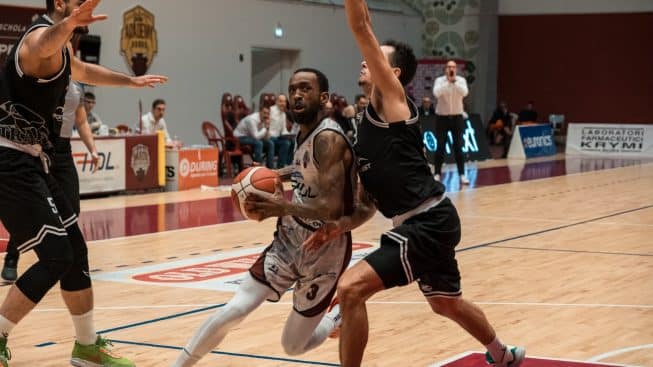 Dalmonte manda sul parquet all’inizio Parravicini, La Torre, Baldasso, Stewart e Donda. Trapani cerca subito di imporre un ritmo vertiginoso al match, Nardò risponde con buona aggressività e con azioni offensive ordinate. Parravicini sembra trovare sentieri facili nel cuore della difesa siciliana con due penetrazioni vincenti. Nikolic rileva Stewart con due falli, Smith entra al posto di La Torre. Gli ospiti iniziano ad accumulare punti preziosi di vantaggio (+8). Smith debutta sul tabellino perforando il muro di Marini e Mobio, ma il fattore principale della sfida è lo strapotere assoluto di Horton a rimbalzo. Mollura a contatto con Smith si libera dell’americano con una sbracciata, tecnico sacrosanto e libero di Baldasso per il -6. Poi la bomba centrale di uno Smith ispirato sigla il -3 prima della risposta con la stessa moneta di Renzi. L’epilogo della prima frazione è 20-26. Maspero inaugura il secondo quarto con una bella incursione centrale. Trapani adesso è meno efficace rispetto ai primi minuti e accumula qualche fallo di troppo. Smith infila la tripla del 25-26 e Ferrara fa 26-26 dalla lunetta. Coach Diana avverte il pericolo e rispedisce in campo Horton, subito rimbalzo e canestro per lui. Dalmonte mischia le carte con Parravicini e Stewart, i granata difendono con intensità straordinaria e Trapani fa decisamente più fatica. Si sblocca Stewart, segna anche Maspero che fa girare la testa a Notae. Due bombe di Trapani rimettono qualche punto di divario tra le due squadre, ma il mismatch è sempre nel pitturato con la potenza senza limiti di Horton. Il 41-44 di metà partita fa decisamente sperare.