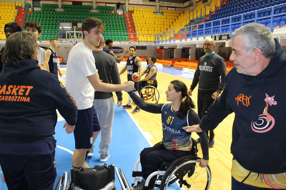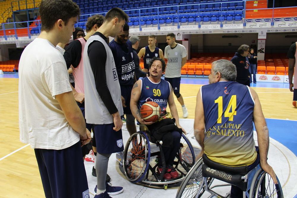 A fare gli onori di casa il coach Frank Vitucci che ha dapprima diretto l’allenamento del Brindisi e successivamente si è fermato, insieme ai suoi ragazzi, a seguire gli esercizi del roster leccese. Una staffetta sotto canestro tra basket e wheelchair basketball che l’allenatore dell’Happy Casa Brindisi si è augurato di poter ripetere. Al termine, come in ogni grande festa, foto ricordo corale e scambio di maglie.