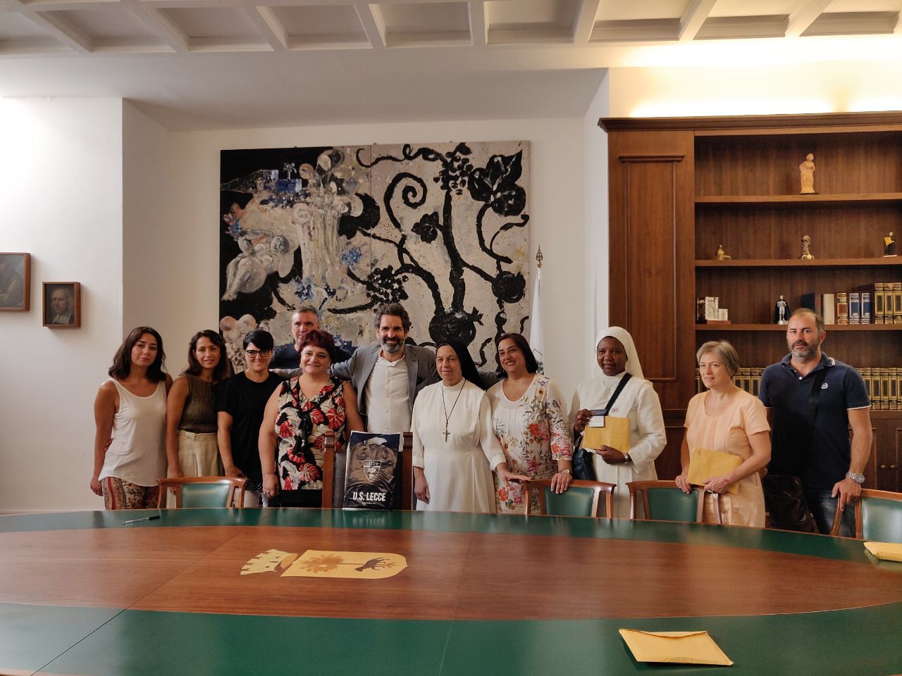 Il sindaco di Lecce Carlo Salvemini ha consegnato le tessere ai responsabili della Comunità educativa “Ambarabà”, del Centro socio educativo “Volare Alto”, del Centro socio educativo diurno “La sorgente”, della Comunità educativa “Chiara luce”, delle Suore discepole del Sacro Cuore, della società cooperativa “Tam” e “Villa Morello” comunità Emmanuel, centri impegnati nel sostegno di minori con problematiche di disagio sociale e familiare.