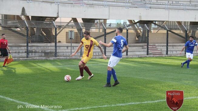 Il Nardò prende subito possesso della metà campo avversaria ma di spazi ce ne sono pochi perché i padroni di casa si arroccano in difesa. Nonostante la costante proiezione offensiva e il pressing alto, i granata non riescono a rendersi pericolosi fino al 25’ quando nell’arco di un minuto sfiorano clamorosamente il vantaggio con Scialpi che prima colpisce il palo interno dopo la deviazione decisiva di Suma e poi si fa respingere in angolo una velenosa punizione dal vertice dell’area di rigore. I padroni di casa si limitano ad aspettare gli avversari, accennando lentamente anche a qualche ripartenza. Al 42’ De Giorgi va in gol ma il direttore di gara annulla per un presunta posizione irregolare del capitano granata. Si va al riposo con il punteggio ancorato sullo 0-0 ma con gli ospiti molto tonici e reattivi.