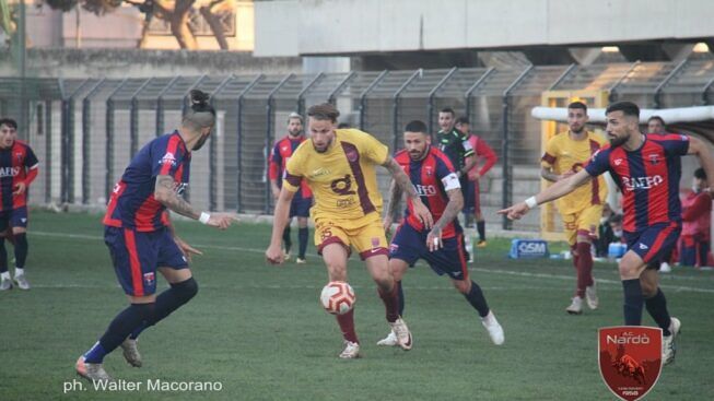 Nel turno infrasettimanale di Serie D, il Nardò capitola in casa nel derby con il Taranto. Basta un gol di Matute nel primo tempo per consentire ai rossoblu di prendersi l’intera posta in palio e il primato della classifica in coabitazione con Casarano e Sorrento.