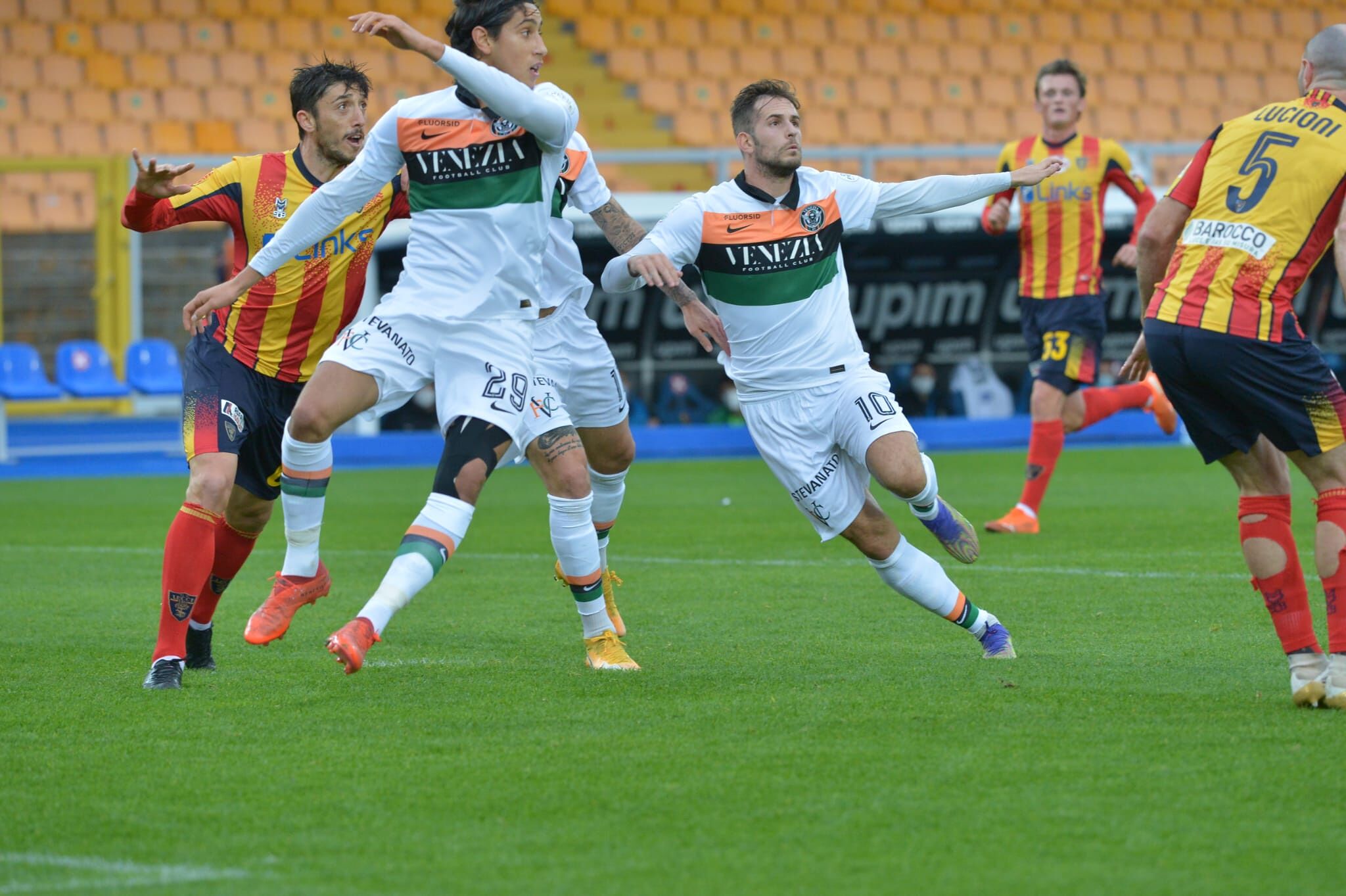 Il Lecce centra il settimo risultato utile consecutivo, ma si fa imporre un complicato pareggio in casa dal Venezia. Una gara davvero strana perché i giallorossi partono a razzo, come di consueto, e passano meritatamente in vantaggio con capitan Mancosu. Poi però la truppa di Corini abbassa i giri e i lagunari ne approfittano: un super Forte (capocannoniere del torneo) ribalta il risultato che solo Coda (che lo raggiunge in cima alla classifica cannonieri) riesce a rimettere sui binari pari. Oggi poco incisivi i terzini e poca lucidità in fase difensiva.