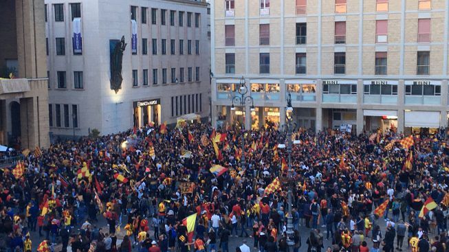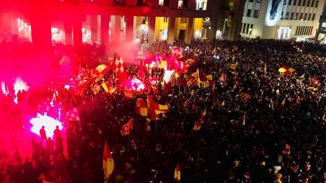 Ma nonostante questo la festa è stata piena: case e vetrine si sono tinte di giallorosso, piccoli tavoli ambulanti hanno permesso a tanti di acquistare qualche gadget, per le vie del centro cori, strombazzate, urla di gioia, qualche fumogeno qua e là, ma soprattutto una marea umana che ha colorato il capoluogo barocco.