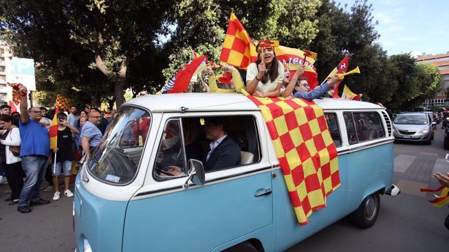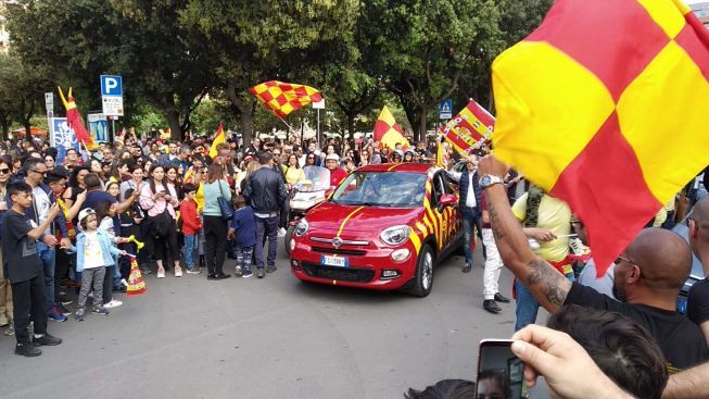 Subito dopo il triplice fischio finale della gara vinta contro lo Spezia – e dopo le colorite esultanze nello spogliatoio del “Via del Mare” – la festa di tutti si è spostata in città. Traffico a tratti in tilt, ma era preventivabile: ha comunque retto bene il piano allestito dal Comune che prevedeva, anche, il transennamento e lo svuotamento totale della fontana di Piazza Mazzini e un lungo cordone a protezione per evitare l’accesso nell’Anfiteatro romano.