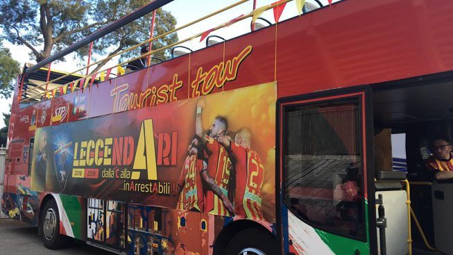 Nel frattempo la squadra si è concessa il tour cittadino a bordo del tradizionale pullman scoperto senza, però, passare da Piazza Sant’Oronzo: un’altra tradizione che quest’anno è stata messa da parte. E allora ai piedi della Colonna la scena se la sono presa tutta gli Ultras: al loro arrivo fumogeni, petardi, fuochi d’artificio e decine di cori intonati praticamente da tutti.
