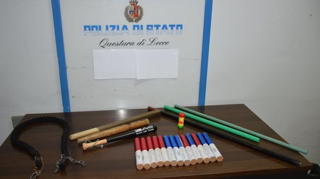 Non solo. Due bastoni in legno, una mazza da baseball e due tubi in gomma rigida. Tutto materiale abbandonato dai tifosi etnei in vista dell'imminente fischio di inizio.