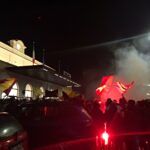 Nel piazzale della stazione ferroviaria di Lecce è un tripudio di cori, grida, fumogeni e stendardi giallorossi. Per i ragazzi di Fabio Liverani, rientrati con il Freccia Argento dalla Campania, una vera sorpresa, regalata soprattutto dal gruppo degli Ultras Lecce.