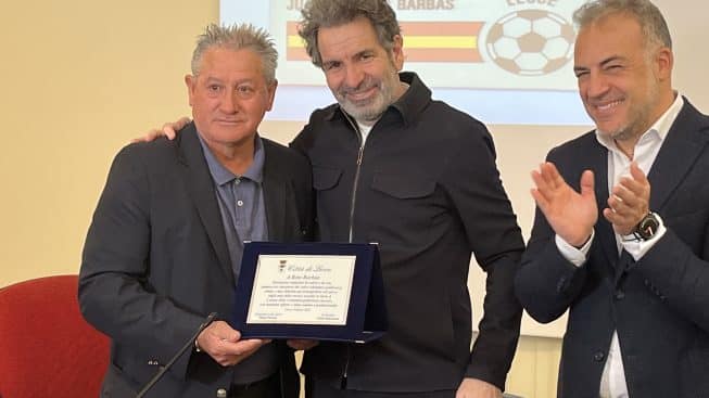 Juan Alberto Barbas, ‘Beto’ per i tifosi, regista argentino che la maglia giallorossa l’ha vestita per tanti anni e, soprattutto onorata, è tornato nel Salento e per l’occasione il Comune di Lecce gli ha tributato i dovuti onori consegnandogli una targa.