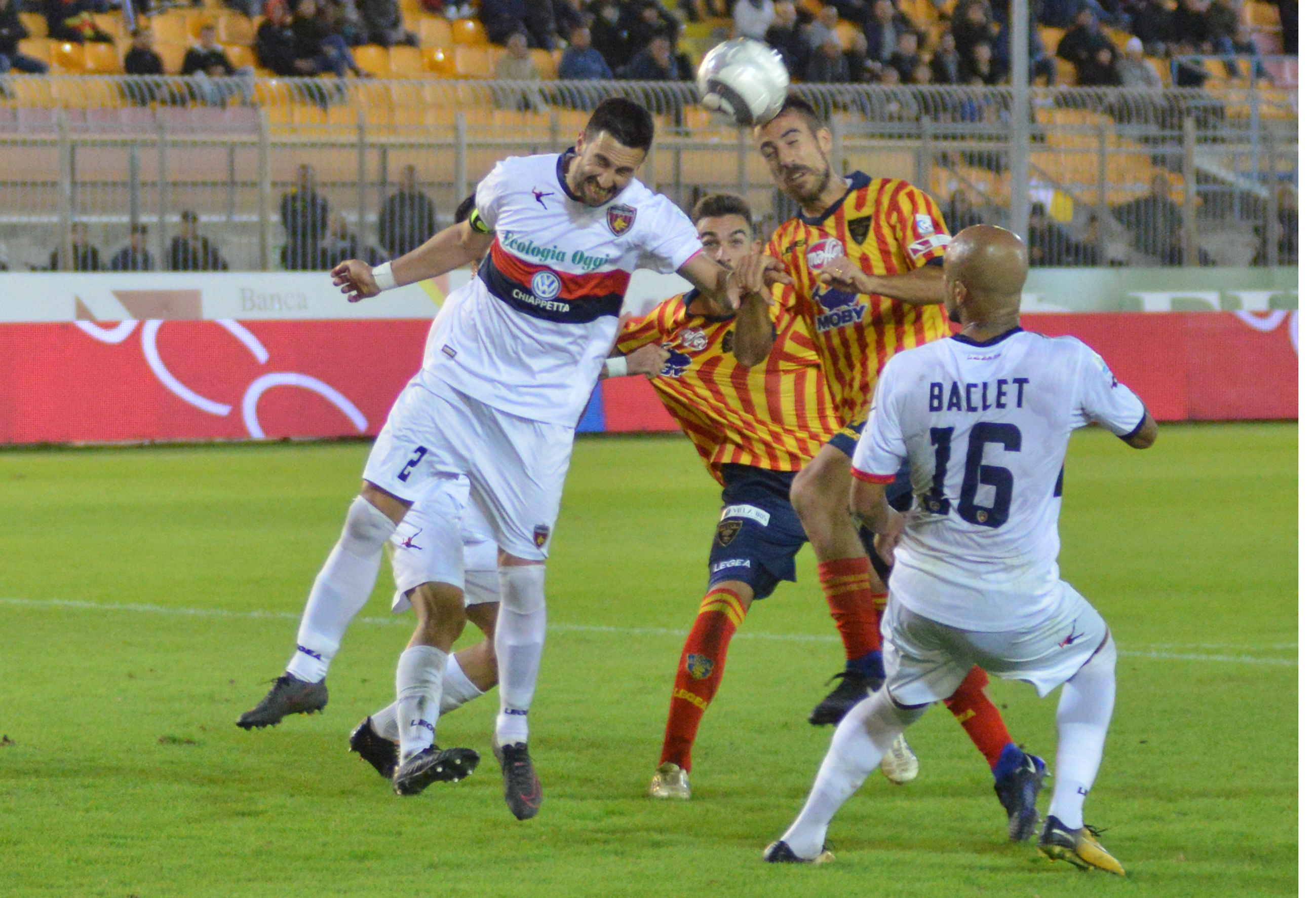 Il Lecce si rende pericoloso al 15mo con una botta mancina di Lepore dalla distanza su cui saracco di distende respingendo la sfera. Al 21mo Cosenza a un passo dal gol. Marino, su pressione di Baclet,perde palla a centrocampo mungo si impossessa della sfera e si presenta solo davanti a Perucchni che riesce a respingere di piede. Al 34mo giallorossi nuovamente vicini al gol con il tiro al volo di Armellino di pochi centimetri a lato. Al 42mo il tiro di Cosenza all’interno dell’area termina alle stelle.