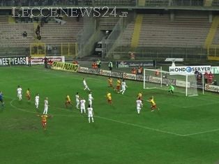 Il Lecce rischia all'8vo a causa di un rinvio sbagliato di Amodio che si lascia rubare palla da Mancini permettendogli di involarsi solo davanti al portiere, provvidenziale é, però, l'uscita di Petrachi che gli impedisce di entrare in area e concludere a rete. Al 20mo Lecce vicino al goal. Cross rasoterra di Doumbia per Ferreira Pinto il cui tiro troppo debole finisce tra le braccia di Iannarilli. Al 26mo buona ripartenza dei giallorossi che rischiano di andare in goal con Miccoli, ma su lancio di Bogliacino il capitano sbaglia lo stop che gli consentirebbe di trovarsi solo davanti al portiere. Al 28mo, su corner di Miccoli, tiro al volo di Amodio che termina alto. Al 33mo giallorossi ancora vicini al goal con Bogliacino il cui pallonetto termina di pochissimo fuori. La prima frazione termina allo scoccare del 45mo dopo aver visto per i primi cinque minuti una buona Salernitana e per il resto del tempo un Lecce che ha tenuto in mano il pallino del gioco, ma non è riuscito più di tanto ad impensierire la compagine campana.