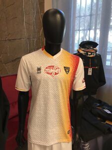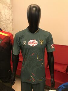 La prima è quella classica, righe verticali giallorosse con piccoli interventi di scomposizione del colore all’altezza del main sponsor e del numero; la seconda, bianca, con i nomi di tutti i comuni della provincia di Lecce, un omaggio al territorio e con una banda verticale giallorossa sul lato sinistro e la terza, infine, tutta verde, con il disegno di un ulivo al centro, celebra uno dei simboli del comparto agricolo-economico del territorio salentino, fiaccato da alcuni anni dalla xylella fastidiosa.