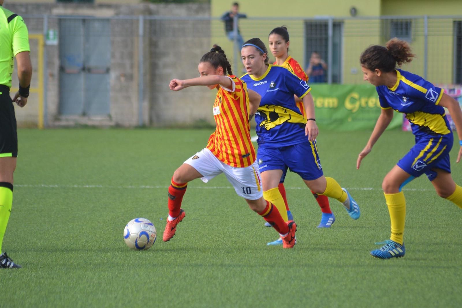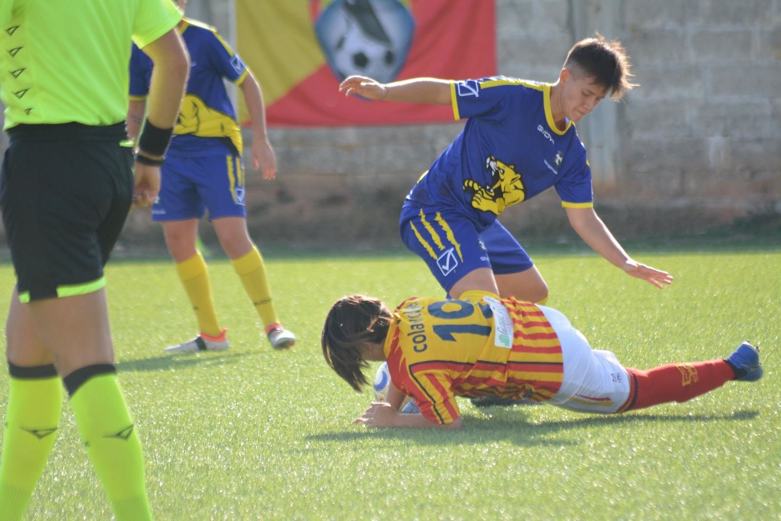 Avvio scoppiettante per entrambe le squadre, con l’immediato vantaggio delle gialloblù al 10’, grazie alla punizione di Di Martino. La risposta delle salentine, però, non si fa attendere: dopo soli due minuti le ragazze di Vera Indino beffano la difesa avversaria e pareggiano i conti.