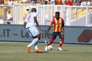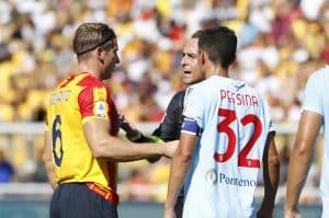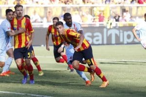 Il primo tiro della gara arriva al 15mo ed è un quasi gol per il Lecce. Calcio d’angolo di Helgason e perfetto inserimento di testa di Baschirotto, con la sfera che termina di poco al lato. Al 15mo, l’esterno di Banda su ripartenza, ha la stessa sorte. Al 18mo inzuccata di Pessina da ottima posizione, ma di petto Pezzella manda in corner. Al 28mo occasione per i salentini. Ripartenza del Lecce, Bistrovic serve Banda che crossa all’indirizzo di Di Francesco che non riesce a colpire la sfera solo davanti a Di Gregorio.