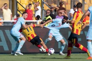 Al 35mo i brianzoli vanno in vantaggio. Fallo al limite dell’area di rigore di Hjulmand su Rovella, del tiro si incarica Sensi che di destro la infila laddove Falcone non riesce ad arrivare.