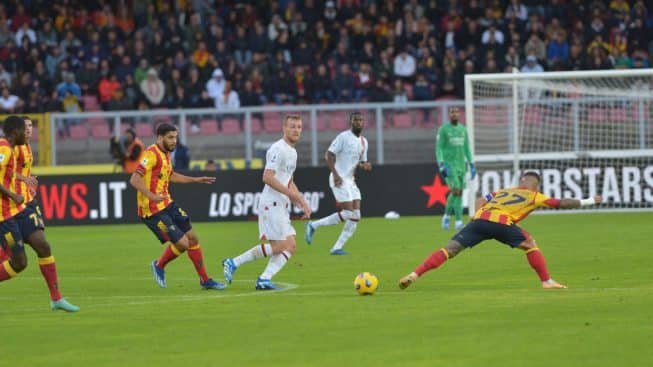 In realtà, i giallorossi, nella prima parte della gara, non hanno dimostrato di meritare l’epilogo verificatosi. Il Milan è partito forte mostrando tutto il proprio arsenale. L’infortunio di Leao aveva fatto tirare un sospiro di sollievo. Forse, inconsciamente, la squadra ha creduto di potersi battere alla pari sopravvalutando l’avversario. In sette minuti, i rossoneri hanno messo il Lecce ko. Sul primo gol, la responsabilità è stata di Gendrey, troppo morbido nel contrastare il treno Theo Hernandez, poi la presa di posizione di Giroud è frutto della sua grande strapotenza. La seconda rete, invece, è un errore di tutti. Di posizione, per lo più. Mediana alta a tentare di recuperare palla con un pressing sul portatore di palla. Linea difensiva troppo bassa. Risultato? Una prateria per Reijnders. Corsa indisturbata, Giroud attrae Baschirotto e Pongracic, passo sulla destra dell’olandese e tiro facile verso la porta. Se non fosse per un tiro troppo sicuro di Banda a due passi dalla porta, neutralizzato da Maignan, il Lecce avrebbe meritato un risultato anche più sonoro.