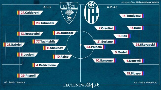 Con 15 punti, il Lecce tenta di restare fuori dai guai, ma davanti si troverà una formazione in netta ripresa: il Bologna di Sinisa Mihajlovic. I felsinei, infatti, dopo un periodo di appannamento, sono reduci da 7 punti conquistati nelle ultime quattro giornate e, con il rientro in panchina di mister Sinisa, i rossoblù sembrano davvero aver ricevuto una marcia in più.
