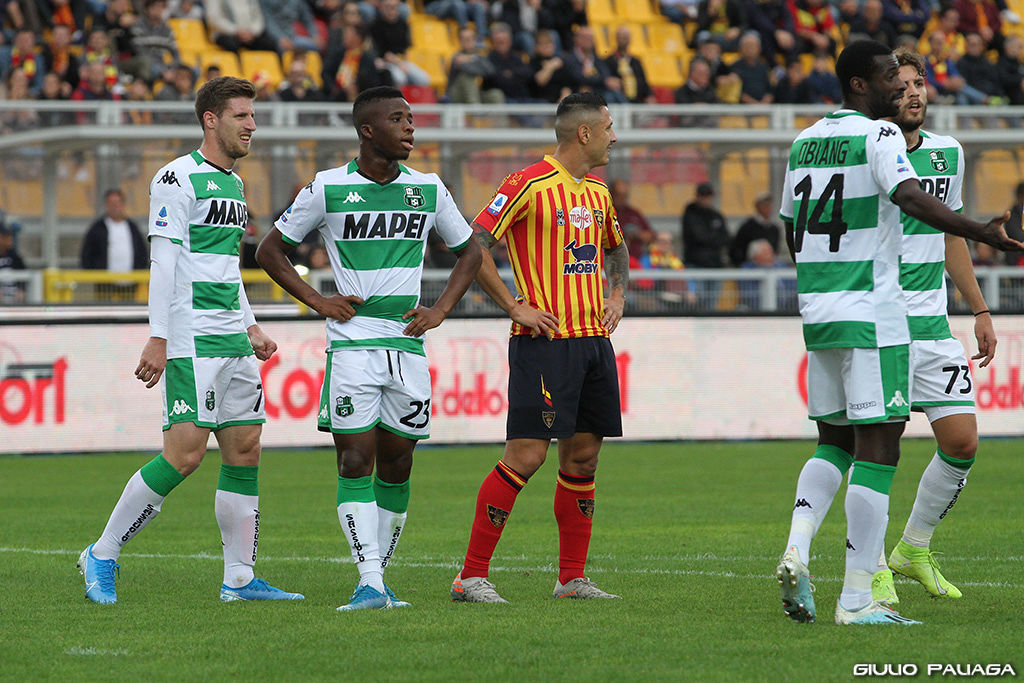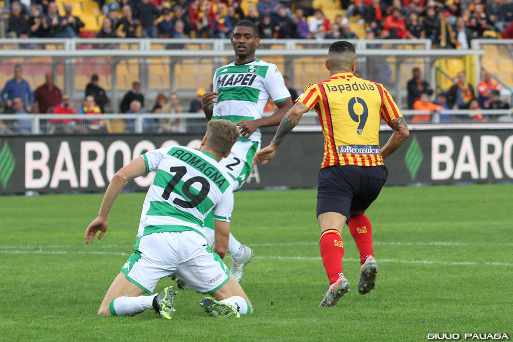 Lucioni, 6: a gennaio era dato molto vicino al Sassuolo di De Zerbi. Il cuore lo ha convinto a restare in Salento per poterla affrontare in Serie A la squadra emiliana. Quel giorno è arrivato: disputa una gara attenta, la solita delle sue, ma da il 2-2 nasce da un suo rinvio frettoloso e corto che favorisce Berardi.