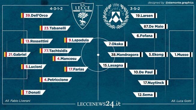 L’Udinese, infatti, fatica parecchio lontano dal Friuli, dove ha raccolto appena 4 dei 18 punti totali in classifica, mentre il Lecce è ancora a digiuno di vittorie davanti al pubblico amico del “Via del Mare”. Per Liverani e Gotti, quindi, la sfida di questo pomeriggio sarà un crocevia importante che potrebbe rappresentare tanto in questo avvio di seconda parte di campionato.