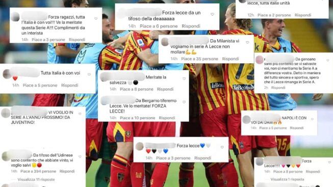 Tifosi della Juve, della Sampdoria, della Fiorentina, dell’Udinese, dell’Atalanta e persino da Bari, sono arrivati su Facebook e Instagram decine di messaggi di stima. “Da milanista vi vogliamo in Serie A. Lecce non mollare“. Questo uno dei tanti messaggi postati.