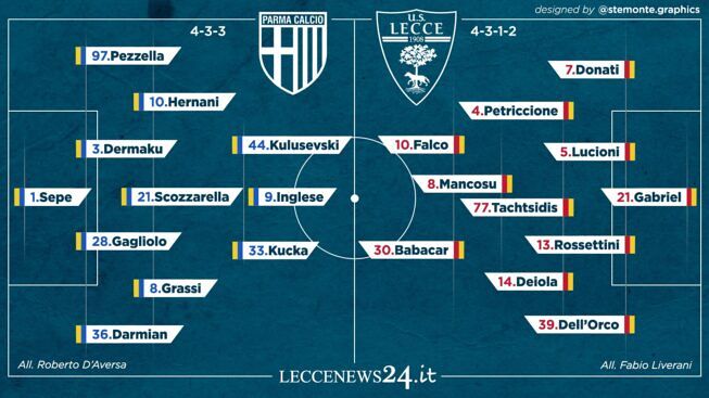 Tra i ducali, invece, c’è il recupero di Inglese che andrà in campo dal primo minuto, mentre Gervinho partirà dalla panchina, come Bruno Alves. Out Karamoh, toccherà a Kucka con Kulusevski nella zona sinistra dell’attacco.