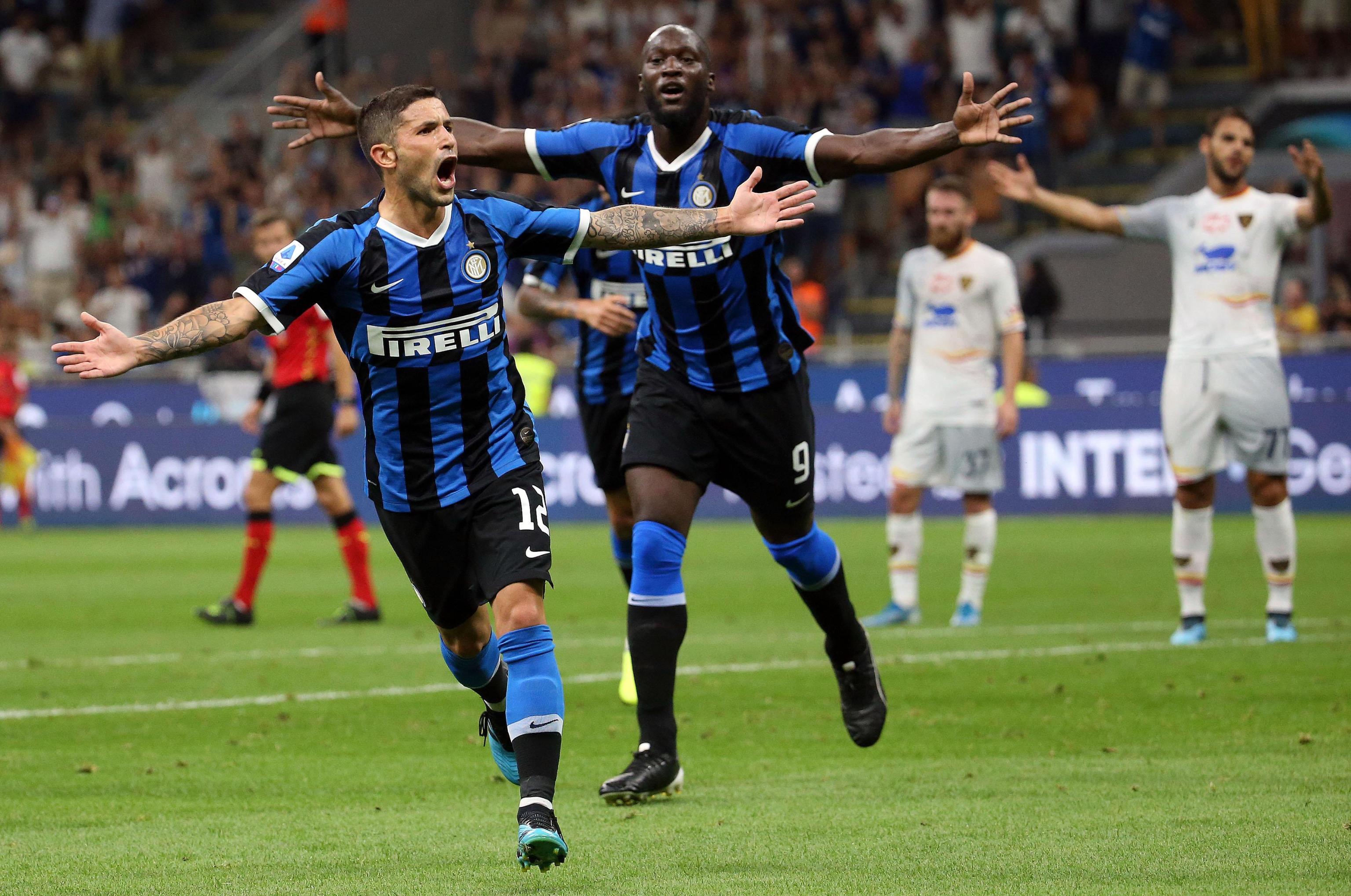 Il primo tiro della gara è dell’Inter. Perfetto giro di palla dei nerazzurri e tiro all’interno dell’area di rigore da parte di Lautaro Martinez, la sfera sembra indirizzata all’angolino alto, ma viene rimpallata da Rossettini e termina in corner. Al 14mo grandissima azione dei salentini. Falco ruba palla sulla trequarti giallorossa, fa fuori due avversari e dopo una cavalcata di 70 metri serve Lapadula che supera Handanovic uscito fuori dall’area e tira in porta, la palla, però, viene spazzata sulla linea di porta da Ranocchia. Al 17mo Inter a un passo dal gol. Cross con il contagiri di Candreva per Lautaro che, solo davanti a Gabriel di testa manda di poco sopra la traversa. Al 19mo rasoterra di Tacthsidis dal limite e parata di Handanovic.