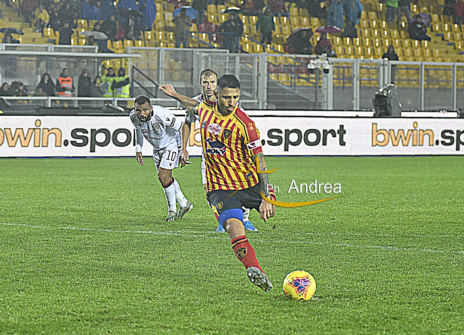 Al 37mo i giallorossi accorciano le distanze. Batti e ribatti in area, Calderoni tira a porta vuota, ma cacciatore respinge con la mano. Per il direttore di gara è rigore ed espulsione. Sul dischetto si presenta Lapadula che con una botta di sinistro trafigge Olsen.